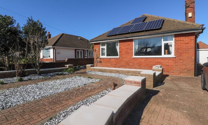 38 Clive Avenue, a single-storey house, consists of a kitchen with electric oven, induction hob, combi microwave/oven, fridge/freezer, dishwasher, washing machine, kettle, and toaster, and a living/dining room with Smart TV, gas fire, and dining seating for six people. The bedrooms consist of two doubles and a twin, serviced by a shower room. You'll find a shop and pub in 0.4 miles and a beach in 0.8 miles. WiFi, fuel, power, bed linen, and towels are included in the rent. Outside, there is an enclosed rear garden with lawn, patio, and furniture. Front garden with a gravelled area and patio and private driveway parking for three cars with additional roadside parking available. Sorry, no smoking. Visit 38 Clive Avenue for your next adventure. No pets at the property. Twin bed is a Superking zip link bed that can be divided to make twin beds.
