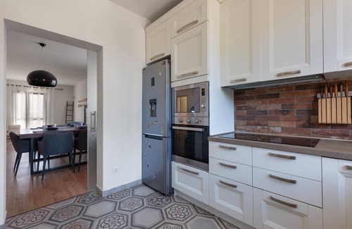 La zona giorno è unampio livingcon grande divano, tv, sala da pranzo e caminetto. Accanto vi è lacucinaben equipaggiata e dotata di piano cottura a induzione.