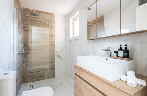 This residence features three bedrooms, each offering a unique haven of tranquility. Two of the bedrooms are adorned with comfortable double beds, providing a luxurious retreat for a restful night's sleep. The third bedroom features two charming single beds, making it an ideal space for children or guests. The bedrooms are thoughtfully designed, featuring AC’s and Smart 4K TV's with Netflix. All have balcony access.