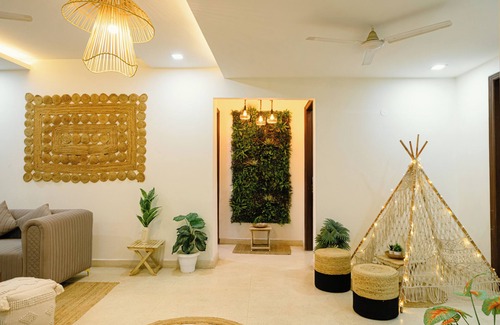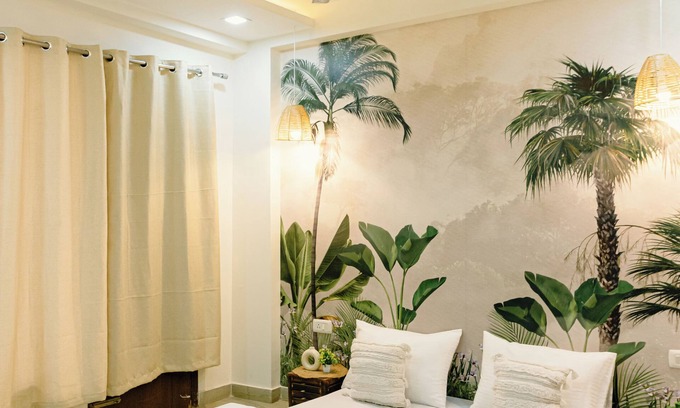 From lush greenery to vibrant pops of color and intricate patterns, every part of our apartment invites you to unwind and soak in the easy-going ambiance. Whether you're relaxing in the cozy living room, cooking in the fully equipped kitchen, or enjoying one of the spacious bedrooms, our tropical boho retreat provides the ideal setting for your Chattarpur escape. Kindly note that there is no elevator in the building.