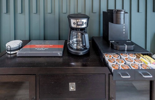 - Keurig machine (complimentary k-cups and sugars provided) or make a pot of your own favorite coffee.