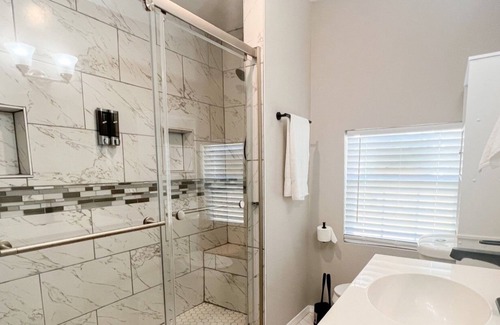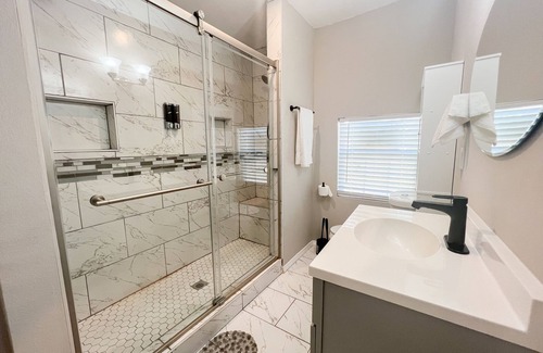 This Pet friendly fully fenced home was completely remolded in 2021 with a modern concept that has Frameless glass shower for master bedroom, Modern Lights, Hammock, 65 inch Smart TV. Guest will have access to the entire house and get reserved parking for 4 Cards and free street parking if required.