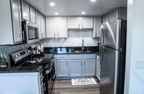 Our cozy home is centrally located and boasts modern, comfortable living spaces, surrounded by beautiful landscaping and walking areas. Proximity to parks, restaurants, shopping, and highways makes it ideal for nurses, professionals working remotely, military or those at nearby hospitals.