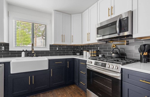 This stylish home is the perfect getaway with an open-concept living area ideal for entertaining. Start your day with a fully stocked coffee and tea bar, then enjoy board and card games with family and friends. Step outside to a backyard oasis where you can unwind by the fire pit or under the gazebo with a glass of wine. Play cornhole, ping pong, or horseshoes, or watch your favorite team on the outdoor movie screen. Just 5 minutes from Marietta Square, Smyrna Market Place, and Truist Park.