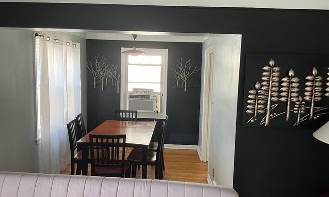 This home is located in a developing neighborhood with lots of renovation projects. The neighborhood is quiet & safe with minimal traffic. This is 3-bedroom bungalow-style ranch house with hardwood floors with full basement including laundry facilities. All bedrooms and bathroom are on the main floor. Each bedroom has a remote-controlled ceiling fan with all bedding needs. The newly renovated bathroom features a walk-in shower including basic toiletries. The kitchen is stocked with the basic cooking & eating utensils & cleaning supplies. Starter supplies for short stays (less than 28-days) of paper towels, toilet paper, laundry detergent, dish liquid and general cleaning supplies are supplied. The doorways and corridor are narrow and not well-suited for wheelchairs or wide-walkers.