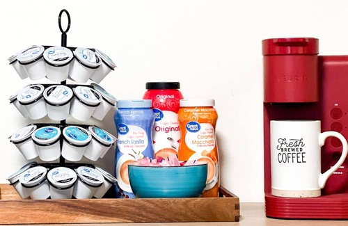 We provide a basic coffee station set up which includes a Kurig coffee machine, coffee pods, sugar and Coffee-mate