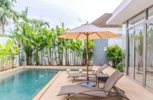 Kha Naen Pool Villa, Thalang, Phuket, Thailand – Experience affordable luxury in the heart of Southeast Asia. This modern Balinese-style, single-storey villa offers a serene escape, featuring a 3x9m swimming pool and a 1.5x2m kids' pool, perfect for families or couples seeking relaxation. Ideal for unwinding after a busy day, the villa provides a peaceful atmosphere where you can recharge without ever needing to leave. Enjoy the tranquility and sunshine in this perfect getaway.