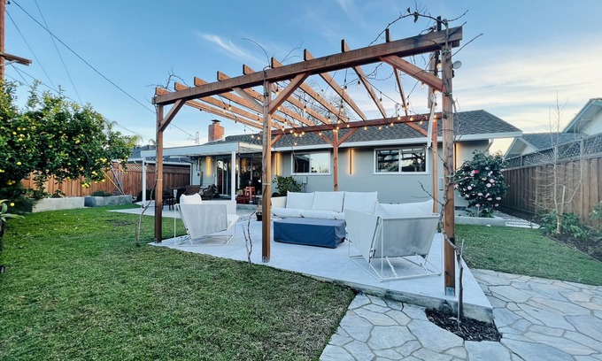 Modern home nestled in a beautiful private backyard garden, with a full kitchen, private workspace, an open floor design, and everything your heart desires (bidets/gym/laundry). You will rave about the location of our home near Westfield Valley Fair (3min), Pruneridge Golf Club (2min), Levi Stadium (10min), Santa Clara University (7min) and Apple Park (7min), and everything else Silicon Valley has to offer. It's a walker's paradise, and a serene base for your next adventure in the Bay Area.