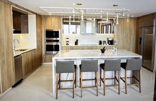 For the ultimate "Baller" bachelorette party one-of-a-kind luxury or bring your entire family to enjoy this spacious 6,501-square-foot Four Bedroom Penthouse split over two floors with a foyer entrance, 4-bedrooms, 4.5 bathrooms, gourmet cooking and dining facilities, a wide living room, and a large private terrace with a Jacuzzi and sweeping ocean views.