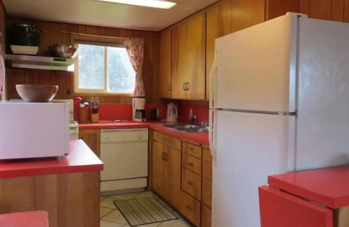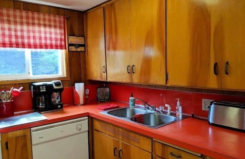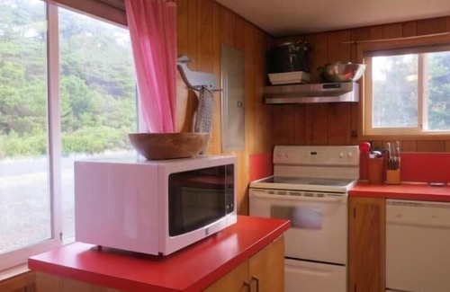 It has been updated over the years, with new vinyl windows throughout. The kitchen and dining area have ceramic tile floors & modern appliances but with the wonderful red countertops it hasn't lost it's sixties charm. The Dining Room has a large picnic table with padded seats that seats 8 and has a fantastic view. Also a great place to play games or do a jigsaw puzzle on those stormy days.
