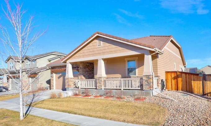 You will LOVE this Gorgeous and SUPER spacious home with almost 4000 square feet; minutes from Buffalo Run Golf Course; 20 min to DIA! 30 min to Downtown Denver! 4 bed/ 3 bath SPACIOUS single family home…Sleeps 12 w/inflatable bed and PACK N PLAY...Bring the whole family to this great home for fun and adventure. Enjoy the nearby neighborhood parkor a 15 minute drive to Barr Lake, with a ton of recreation. You can have your own retreat in this luxury home with an incredible home theatre system, foosball, pool table, hockey table and video game console found in the basement. Sleeps 12 people total with inflatable.