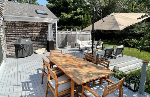 Stay at this recently renovated 4 bed 3.5 bath Osterville home. Less than a 5 minute walk to Joshua pond ,1 mile from Dowses beach and less than a 10 minute walk to downtown Main Street (0.4 miles away). Perfect home for 2 family summer rental with kids or adults. Beach sticker will be provided for full access to all Barnstable beaches. Two bedrooms have private bathrooms (queen beds). One room with Twin XL mattresses that could be converted to a king and one king bedroom. Grill provided for patio grilling.
