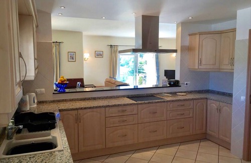 INTERNAL AMENITIES: Inside the property includes air conditioning in all four bedrooms and the living room. (Please note that there is no heating or air-conditioning in any bathrooms). Dressing tables with hairdryers are provided in all bedrooms. Sufficient linen, bedding, bath towels and pool towels are provided for all guests. The property features a modern open plan kitchen/living area with breakfast bar, fully stocked kitchen with oven, microwave, touch hob, fridge, freezer, dishwasher and washing machine. An iron and ironing board are provided. Cots and high chairs are also available to hire locally.