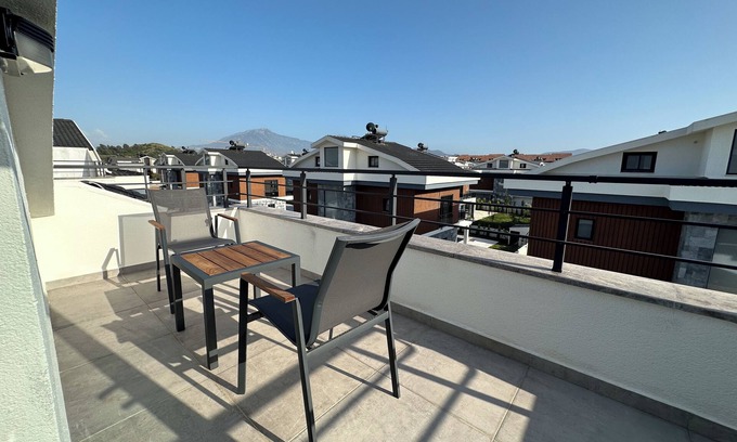 The villa is in Calis neighbourhood, 300 metres from the beach, 5 km from the city centre, and 35 minutes from Dalaman airport.