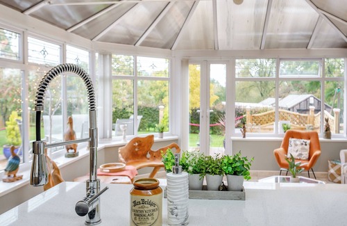 Bathroom: Bath With Shower Attachment, Heated Towel Rail, Toilet. Oil central heating, electricity, bed linen, towels and Wi-Fi included. Welcome pack. Enclosed rear garden with patio, sitting out area and garden furniture. Hot tub for 4 (private). Private parking for 3 cars. No smoking. Please note: there is a step in the garden.. Featherstone House is a lovely detached, stone-built bungalow situated in Coatham Mundeville, near Darlington, conveniently close the A1 Road network. Refurbished in 2022, offering ground floor accommodation, the bungalow is extremely spacious and is perfect for families with members of all ages. To the front of the property is a lovely sunroom which is relaxing and catches the evening sun, a spacious lounge with chesterfield sofas set around a log burning fire and smart TV for your entertainment. A separate dining room has patio doors opening out onto the decked area with hot tub, and open plan kitchen opens into a large conservatory. This is a great space to gather and entertain. The kitchen is oak shaker style with beautiful granite worktops and is fully equipped to cater for your needs. Off to bed and there are three good sized bedrooms, the master bedroom with king size bed, a double bedroom and finally a twin. There are two bathrooms one with shower and the other with a free-standing bath and shower attachment. The bungalow is perfect for a family or group get together or special celebration.