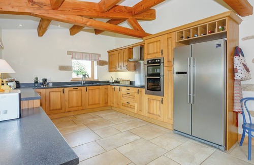 Bathroom: Bath With Shower Attachment, Toilet. Ground source underfloor central heating, electricity, bed linen, towels, Wi-Fi and wood for wood burner and hot tub included. Welcome pack. Enclosed lawned garden with patio, garden furniture, firepit and pizza oven. Wood fired hot tub for 5 (private). 8½ acre grounds with seasonal pond. Bike store. Private parking for 5 cars. No smoking. Please note: There is a seasonal pond in the grounds, 30 yards. The property has a natural water supply from a borehole. Sorry, no hen or stag parties. Families and couples only.. Hidden down a private farm track in the middle of the Forest of Bowland, Boococks Barn offers a truly unique and special stay. Set in 8½ acres of its own land, you’ll feel like the only people in the world when you stay here, with your only neighbours being the local highland cattle, deer and hares lolloping through the meadows. The feeling of being secluded in its own acres is magnified by its self-sufficiency; ground sourced heat warming the two floors on individual room dials, spring water from the private borehole and a Swedish hot tub, fired by locally sourced wood. It’s an ultimate get away from it all. Every aspect of this beautiful barn conversion has been thoughtfully designed to make the most of the scenic surroundings. The 180 degree view from the barn has to seen to be believed and is revealed descending the track to the property. It starts at Whernside in the Yorkshire Dales, followed by the contour of Ingleborough, capped in the southern extreme by Pendle Hill. To the back of the barn a large, light filled kitchen with a dining table in the centre is the perfect focal point to sit and chat over dinner. There is a double bedroom and shower room which is ideally located close to the garden so you can hop in and out of the hot tub. Upstairs, there are a further three bedrooms, two of which are kingsize, plus an en-suite showeroom and a family bathroom. The pièce de résistance is the living room, which takes up the front of the barn with a magnificent two storey window showcasing uninterrupted views over the Ribble Valley and Yorkshire Dales from both floors. The main living area is divided into two by a lavish double sided fireplace creating a bright and open social space and a cosy nook which is perfect for snuggling up with a book. Outside, the owners have installed an eco friendly, Swedish wood fired hot tub nestled in a corner of the garden which is perfectly positioned to make the most of the gorgeous vistas from sunrise through to sunset. You’ll also find a pizza oven and hand built firepit to cosy up next to while you gaze at the stars on a balmy summers evening.