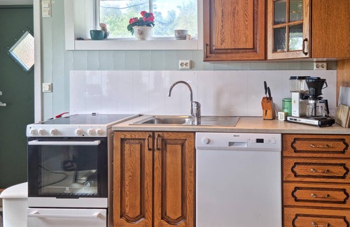 Look forward to this beautiful and older vacation home in modern style. Enjoy the view of the sea from the house and make yourself comfortable in the fully equipped floors. The house is ideal for two family friends who want to travel together, but still want your privacy. Snuggle up on the sofas in the evenings, watch entertaining series or play board games at the large dining table, by the crackling fireplace.