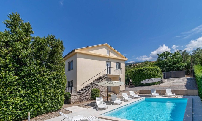 Spend a pleasant holiday in this holiday home with pool. It consists of two floors of very similarly furnished accommodation units, which are connected by external stairs. The favourable location offers you plenty of privacy. On the fenced plot you can enjoy a barbecue, spend time playing with your children or take a refreshing dip in the pool. The sea can be reached in about 10 minutes on foot or you can visit some of the most famous beaches in this region by car, such as Crikvenica or Baka on the island of Krk. Spend your evenings in Opatija or another coastal town with numerous restaurants and leisure facilities.