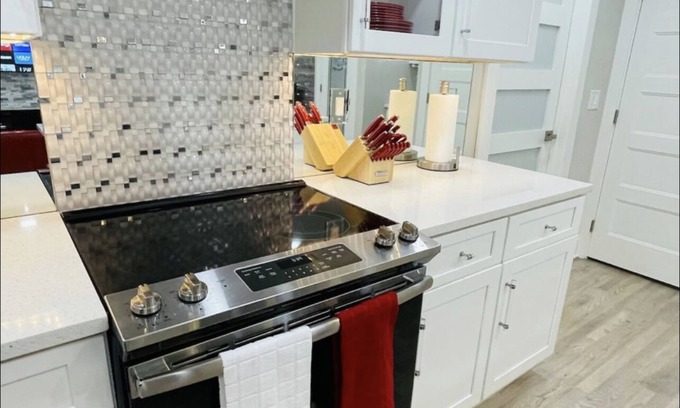 This updated modern craftsman home is perfect for families, large groups and business travelers. This home has been renovated from top to bottom, with all new furnishings and fixtures. Includes 4 bedrooms with 2 master suites. Large kitchen, dining room, living room, laundry, and private fully-fenced backyard, there is plenty of space.