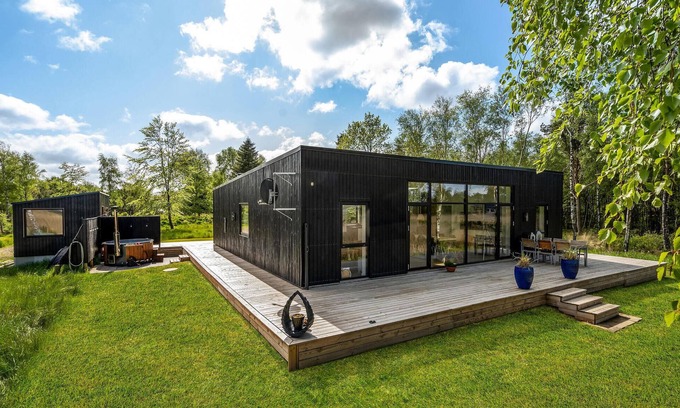 Rest, relaxation, exercise and plenty of family time are your goals for your vacation. In this modern house you can combine all this with a feel-good atmosphere and tasteful furnishings. In the main house and outbuilding you can enjoy your privacy in the bedrooms and spend time together playing games, watching movies and cooking and eating in the bright living room. Do what you like and relax in the Finnish wooden bath in the garden and look out over the fjord. Afterwards you can sunbathe on the terrace or watch birds with the telescope a little later.