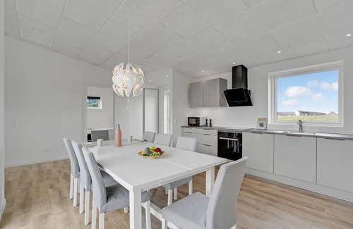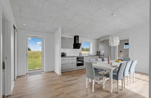 In the rolling, hilly landscapes of Hjarbæk Fjord you will find this beautiful vacation home. The interior offers a modern, tasteful interior and a bright, open atmosphere that invites you to feel at home. Enjoy meals at the dining table overlooking the fields or dine al fresco at the garden table during the warm, bright summer evenings.