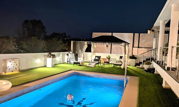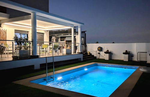 This lovely house in Torrent offers 4 cozy bedrooms, including a king bed, 2 twin beds, and a sofa bed. With 2 bathrooms equipped with showers and hair dryers, guests can freshen up after a day of exploring. The property also features a fitness room, iron, washing machine, AC, heating, and WiFi for your convenience. A great terrace and pool area with amazing views over Valencia. A great place to call homebase while you're away, we hope you enjoy your stay.