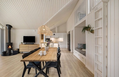 Close to the popular Liseleje beach, this charming holiday home offers you peace and relaxation. Escape from everyday life and immerse yourself in typical Danish cosiness. The bright living and dining area is directly adjacent to the open-plan kitchen and creates a harmonious atmosphere in which you will immediately feel at home. Start the day with a freshly brewed cup of coffee and enjoy your breakfast while you plan the day's excursions. When it gets cooler outside, the wood-burning stove provides pleasant warmth and a cosy atmosphere.