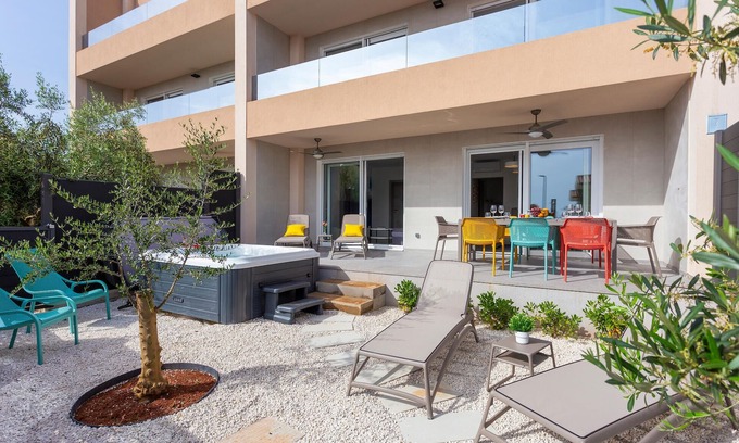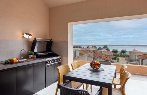 You can enjoy the Croatian sun on the terrace with seating area or relax in the large whirlpool. In the evening, you can use the barbecue and end the day with a view of the glittering sea. Two further balconies invite you to sunbathe or read privately.
