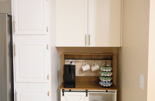 • Coffee maker (Keurig) & starter pods provided