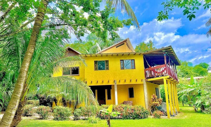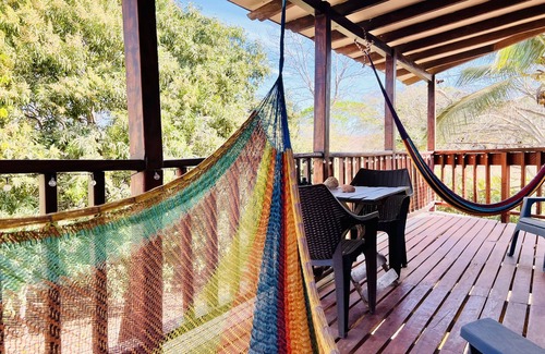 Relax in the beauty of nature at this charming, rustic finca. Just minutes from the white sands of Playa Blanca and the dark sands of Playa Junquillal, this 4-bedroom home is the perfect retreat for your large group after a day of adventure. Enjoy the convenience of high speed internet, air conditioning, washer-dryer and a full kitchen while experiencing wildlife from the balcony where you can watch the howler monkeys, squirrels, and magpie blue jays that come to feed in the lush mango trees.