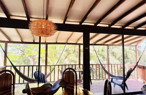 Adjoining the great room is a large terrace that overlooks the backyard. It is only a few meters away from the mango tree where the howler monkeys love to feed. Laying in one of the handmade hammocks on the back terrace is a perfect way to watch the sun fall beyond the horizon after a day of adventure.