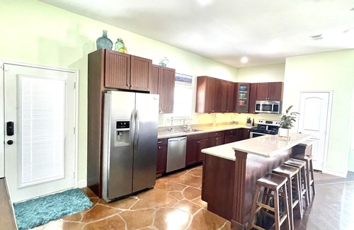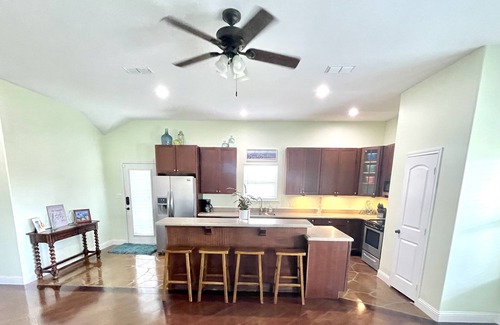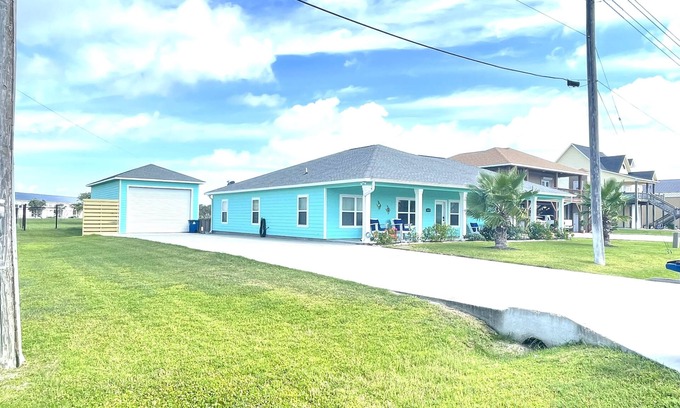 Welcome to our charming 4-bedroom vacation home in the coastal town of Port O'Connor! Imagine yourself relaxing on the porch, taking in the sights and sounds of the nearby beach. Inside, you'll find a fully stocked kitchen with all the appliances you need to whip up delicious meals, including a stove, oven, refrigerator, grill, and dishwasher. Gather your group in the cozy living room to enjoy the smart TV with satellite/cable channels or challenge each other to a friendly game night with the selection of games provided. When it's time to unwind, retreat to one of the 3 bathrooms, where you'll find towels, basic soaps, and a hair dryer. Stay comfortable year-round with the air conditioning and heating. With free WiFi, a washing machine and dryer, and an outdoor play area, this vacation home has everything you need for a memorable stay. Explore the local attractions or simply soak up the sun on the beach - the choice is yours!
