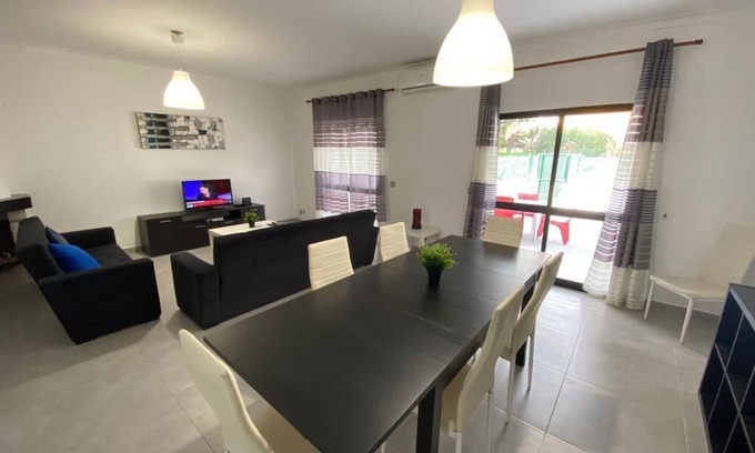 Villa in Altura with 4 bedrooms and 3 bathrooms. Three bedrooms with double bed, one with bathroom, one with 2 single beds. Located in very close to the beach (cinema street). It has an excellent backyard with table and chair, sun loungers, barbecue, shower, cable tv, wifi internet ... etc. Nearby shopping area, as well as restaurants (pizzeria), grills, butcher, supermarket, pharmacy ... etc.