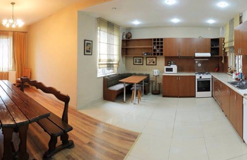 House ( Villa type) rental on daily basis in the city center. There are 4 bedrooms, 5 bathrooms, space for billiard, garden, 2 balcony, terrace. Newly renovated, clean, well equipped, full appliance in the kitchen, there are A/C and W/C in every bedroom. From the house there are perfect panorama views all over Tbilisi. You can find space for billiard and small garden for BBQ. A TV with cable channels is featured. There is a private bathroom with a bathtub.