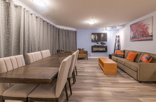 4 Bedrooms Suite Combo for Group of Families - Windtower Lodge is located in Canmore, just 17 miles from The Whyte Museum of the Canadian Rockies and 17 miles from Banff Park Museum. Both free Wifi and parking on-site are available at the apartment free of charge. Cave and Basin National Historic Site is 18 miles from the apartment and Banff International Research Station is 16 miles away. Providing a balcony and mountain views, the spacious apartment includes 4 bedrooms, a living room, flat-screen TV, an equipped kitchen, and 4 bathrooms with a shower. Towels and bed linen are provided in the apartment. The accommodation has a fireplace. Guests can also relax in the garden. Calgary International Airport is 70 miles away.