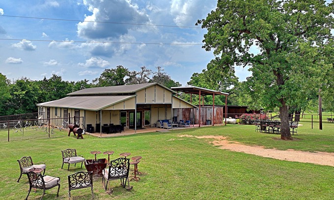 4 D Guest Ranch Barndominium on 260 acres with 300 animals & 2 stocked ponds is located in Waelder. 4 D Guest Ranch Barndominium on 260 acres with 300 animals & 2 stocked ponds provides accommodation, featuring Internet, Kitchen, Laundry, among other amenities. This House features Internet, Kitchen, Laundry, to make your stay a comfortable one.