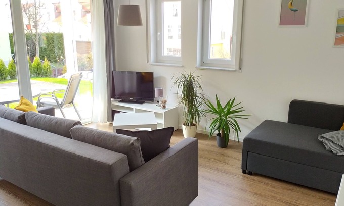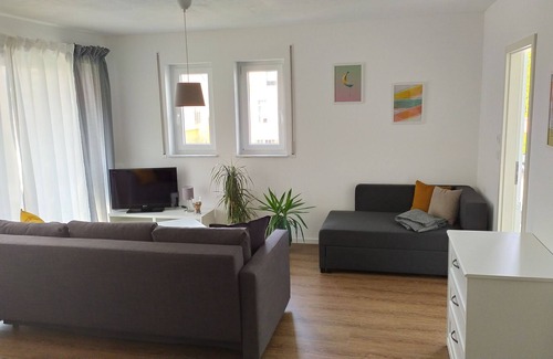 A warm "good luck" in our 2019 completely renovated apartment (55m³) in the beautiful Ore Mountains village of Adorf. It is located in a quiet residential area in a row house and can be reached via a separate entrance.