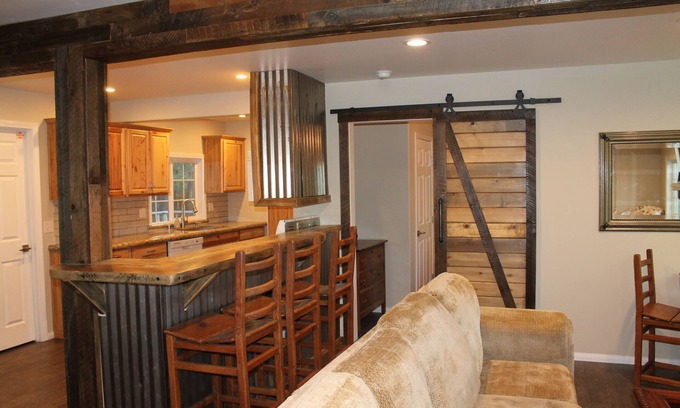 3 bedroom, 2 bathroom cabin is beautifully and completely Remodeled and is just steps to the Village. WiFi, 2 Smart TV's with Firestick & Roku remote for streaming, Blu-Ray player, Fireplace, Washer/Dryer, Library, BBQ, Large Front Porch and Back Deck, Driveway Parking, Pet Friendly.