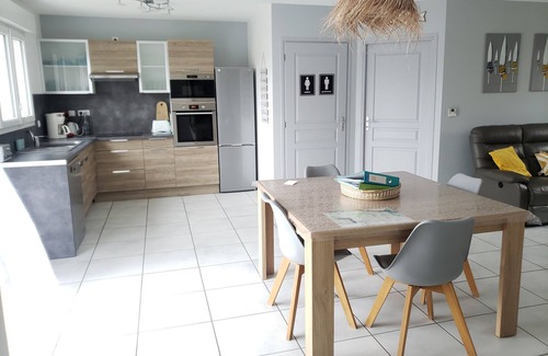 The 80m² house consists of a beautiful bright living room and comfort (fully equipped kitchen: dishwasher, oven, microwave, Nesspresso, coffee maker, kettle, toaster, steamer, blender, electric beater, seafood platter utensils ... and a very nice living room with relaxing sofa and TV flat screen 117 cm, DVD player, Wii, video games, library, many children's games (playmobils, Queen of snow, dinosaur, cars, barbies ...) and many board games. The room for 4 people overlooking the terrace. A room with 160cm bed side tables,