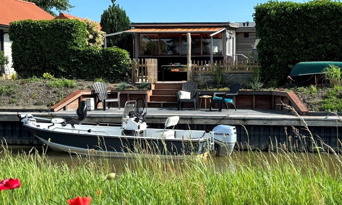 4 pers house Cecil with own fishing spot on a dutch chanel | Ski Chalet in Eanjum