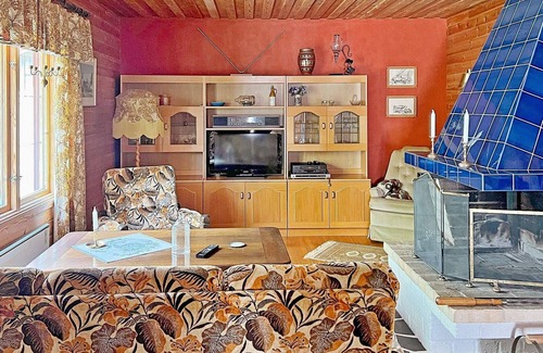 Layout: Kitchen(cooker(electric), microwave, dishwasher, fridge-freezer, water from well), Living/bed room(TV(swedish TV channels), fireplace, radio, CD player), Living/bed room, bedroom(2x single bed), bedroom(double folding bed), bathroom(washbasin, shower, toilet), washing machine(shared with other guests), terrace(garden furniture), garden, geothermal energy, air to air heatpump