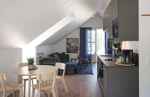 In this nice and newly renovated accommodation on a beach plot with lake views, jetty and beach, you can enjoy a fantastic holiday in nature close to Rånäs in Norrtälje. Access to rowing boat and a private, secluded beach only 150 meters away in addition to the beach on the common plot. Here you live in a bright and fresh apartment where everything is renovated in 2021 and bathe in Sweden's 5th cleanest lake, Gavel-Långsjön! Located in soothing, scenic surroundings with convenient proximity to Roslagen's beautiful archipelago, Rånäs Castle, Uppsala, Stockholm and much more! A warm welcome to this sea gem! You reach the apartment upstairs along the gable towards the lake where you have a magical lake view with the best sun position. Hear the birds chirping and enjoy the sun all day on the balcony looking out over the beautiful surroundings. Inside the apartment you are welcomed by an open floor plan where the living room and kitchen are combined into one, at the far end for more privacy is a lovely double bed and a pull-out bed that becomes a double bed. It is possible to separate the sleeping area with a room distributor if desired. The kitchen is equipped with most things you could possibly need, and the bathroom with toilet, shower and combined washer / dryer. Everything is newly renovated in 2021, photo of bathroom and kitchen will come soon when it is completely completed. The home is located on a large beach plot with lush garden that welcomes you to play, rippling stream that walks down to the lake and down by the lake there is a barbecue, outdoor shower and wood-fired sauna (ask the owner if you can use). Borrow the rowing boat for a trip out on the lake or why not fish a little pikeperch (talk to the owner about Fishing license). This accommodation offers everything you could possibly need and a little more, nearby there are several different golf courses for those interested in golf and one of them is Johannesbergs Golfklubb. In Rimbo you will find grocery stores and service. Rånässlott is worth a visit for its architecture and good food. Also take the opportunity to take a trip out to the coast to enjoy the beautiful archipelago and all it has to offer! Tip! The owners have a wood-fired sauna with an associated shower down by the lake, just ask the owners if you can enjoy a sauna! Good to know The accommodation is located on top of the owners' garage. The owners are a very nice family and live in the big house next door, you share the plot with them but the plot is very large. You also have the option of your own private beach only 150 meters from the accommodation. The apartment has an open floor plan between the beds and social areas, but there are screen walls for privacy. Travel cot is available to borrow. The owner has a cat.