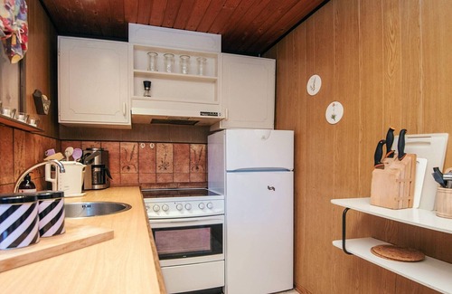Layout: open kitchen(cooker(electric), coffee machine, fridge-freezer), Living/bed room(TV(cable, german television channels, danish TV channels (DR1 and TV2)), CD player, stereo unit), bedroom(double bed, children's bed), bedroom(2x bunk bed), bathroom(floor heating)(bathtub or shower, washbasin, toilet, washing machine), heating(electric), terrace(roofed), garden, BBQ