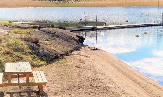 A warm welcome to live in this well-planned house located by the beautiful lake Värmeln by Gårdsvik's leisure area in Värmland. With only a 5 minute walk you reach 1 of 3 bathing places in the area around Värmeln. For those who want to enjoy walking or running, there is a beautiful hiking trail around the water called the Runerundan. The house has an open floor plan between the kitchen and living room. In the living room you can sit and cuddle in front of the TV and the wood burning stove on a rough summer evening. The bathroom is also on the same level. The house consists of a floor with 2 bedrooms, each of which has a separate exit to one of the house's terraces, this room has 2 single beds of 90 cm. The house's second bedroom has a double bed of 160 cm. In the summer, it feels great to be able to use the large terrace that invites you to a wonderful breakfast or the evening's good barbecue dinners. With only 6 km you get to Värmskog's popular café which offers its extra large shrimp sandwiches, and very exciting things to experience such as hiking trails, silver mines, bathing areas and the giant cauldron a rock formation from the ice age.