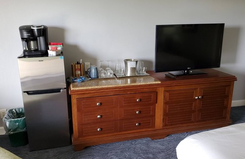 The room overlooks Nukoli'i Beach & Park and has a beautiful ocean view from the lanai ( See Photos ). The room is in one of the few areas on the resort where you can hear the ocean 24 hours a day without the artificial pool noise in the garden area. You have a tranquil, romantic, direct view of the ocean with no distractions. Just the sun, the waves and natural vegetation of Hawaii. The air-conditioned room has a comfortable king bed, a child sized ottoman, coffee maker, mini-fridge and free Wi-Fi. The bathroom includes a tub with shower and is appointed with travertine tile and marble counter top. The room is newly renovated, carpeted and painted. The room is on the ground floor of building three, so No Stairs or Elevators to slow your 30 second walk to the beach or pools. We have a second room( Vrbo# 1809090 ) next door if you have a party of more than three. Book early if you want both rooms for your group.