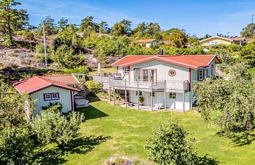 Cozy and homely accommodation in a sunny seaside location Welcome to this family-friendly, cozy and homely cottage with annex located in a small cottage area near the charming coastal idyll and fishing village of Rågårdsvik on Skaftölandet. A quiet and peaceful summer paradise with a friendly atmosphere and nice salty swimming. In the neighboring community of Grundsund you can walk along the canal and experience picturesque boathouses and piers from different eras. Here you will find professional fishermen where you can buy fresh fish, shrimp and crabs directly from the boats. Experience the archipelago by, for example, renting a kayak or going on a seal safari or hiking on coastal roads and paths. On Skaftö there are 2 golf courses, a pay & play within walking distance and an 18-hole course in the neighboring community of Fiskebäckskil. Through the welcoming entrance you enter the upper floor of the house with an open plan, the many windows and patio doors to several directions provide a bright and wonderfully cozy atmosphere. On the entrance floor there is an open kitchen with stove, fridge/freezer, microwave, coffee maker and dishwasher, large dining area, living room with wonderfully comfortable sofa group, warming wood-burning stove, reading corner and TV, two bedrooms, one with a double bed and one with a single bed (140 cm wide), bathroom with underfloor heating and shower. From the living room and dining room, doors lead out onto the cottage's sunny large patio area with outdoor furniture and barbecue, where you can enjoy good meals, sunbathe, read a good book or maybe just relax after a wonderful day on the beach or golf course. In the basement is the cottage's second bathroom with underfloor heating and shower, sauna, laundry room, a living room and a bedroom. From the patio, a staircase leads down to the cottage's annex with a bedroom with single beds. Outside the annexe, a nice mature garden with lawn spreads out, perfect for all kinds of games and play. The cottage is equipped with wifi. From the cottage you can also easily make day trips to other places worth visiting on Skaftö or Havets Hus in Lysekil, Nordens Ark, Smögen, Kungshamn or other fishing and boat communities in northern Bohuslän. The idyllic island of Bassholmen with its museum of traditional boats is also well worth a visit. There is a boat mooring for those of you who want to bring your own boat to the cottage. Welcome to a wonderful holiday on Skaftölandet!