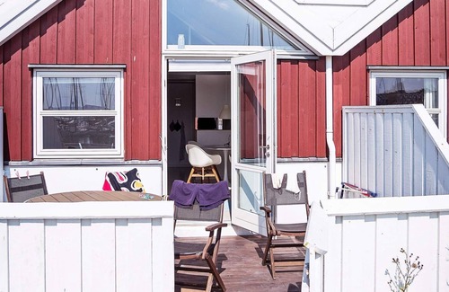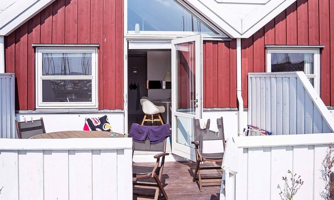Holiday home located directly on the harbor quay at Nibe Marina with fantastic views of the marina, the fjord and the whole area. The house contains a combined living room and kitchen with double sofa bed, a double bedroom and a 16 m & # 178; large loft with two beds and a bathroom with washing machine. There are 12 m & # 178; terrace right next to the water and with a wonderful view of life on and around the marina. In addition, 24 m & # 178; enclosed patio. At one end of the harbor, a large harbor pool with changing rooms and a large sun terrace has been built, and at the other end, a bathing beach with a jetty has been built. There is a lifeguard at the harbor bath.