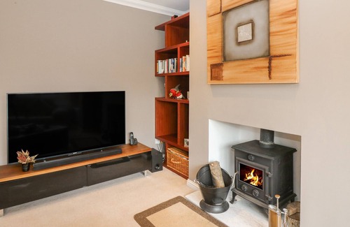 Amenities: Oil central heating with woodburning stove. Electric oven and hob, microwave, fridge/freezer, washing machine. TV, WiFi. Fuel, power and starter pack for woodburning stove inc. in rent. Bed linen and towels inc. in rent. Off-road parking for one car. Garage for bike and sport equipment storage. Enclosed garden with lawn. Two dogs welcome. Sorry, no smoking. Shop and pub 0.4 miles
