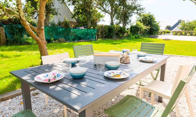 For your holiday in the south of Finistère, we have found this beautiful new house, arranged for 8 people. You will appreciate its garden, where a barbecue awaits you to prepare delicious grilled dishes to be enjoyed outside, around a friendly table.On the ground floor, you will first discover the large living area. A welcoming TV lounge will allow you to relax, watch a good film, or vibrate in front of sporting events. The dining room invites you to sit around its table to enjoy the good dishes prepared in the pretty new and fully equipped kitchen. You will find a fridge-freezer, an oven, a microwave and an induction hob to cook good meals. A dishwasher is also at your disposal to make your life easier. For breakfasts, a kettle, a toaster and a Senseo pod coffee maker will help you start the day well.In the entrance, there is an independent toilet and a laundry room with a washing machine. At this level, there is also a bedroom with a Queen size bed (160/200) and its private bathroom with shower. You will certainly appreciate its large bay windows overlooking the garden.Upstairs, three bedrooms welcome you: the first and second with Queen size beds, and the third with two single beds. You will also have a bathroom with a bathtub and toilet. Don't feel like going back to the office? You can work from home thanks to the office space on the mezzanine and Wi-Fi connection. From this space and one of the upstairs bedrooms, you can even catch a glimpse of the sea.For more comfort, you will have the possibility to park two, even three cars on the plot, depending on their size. A Bluetooth speaker is also made available to you.Very well located, the rental is located at:- 490 m from the beach of "Trez Cao",- 550 m from the beach of "La Baleine",- 800 m from the restaurant "La Marinière",- 900 m from the restaurant "Le Casier",- 1 km from the port of Trévignon, fish sales at the hall, upon return from fishing- 5 km from the town of Nevez- 6 km from the supermarket "Intermarché Nevez"- 7 km from the town centre of Trégunc,- 7 km from the supermarkets "Lidl and Casino",- 11 km from the town centre of Pont Aven- 13 km from the town centre of Concarneau, (from Concarneau, possibility of taking a boat to reach the Glénan archipelago),- 18 km from the "Golf de Cornouaille" estate- 37 km from the town centre and railway station of QuimperTrégunc is the ideal destination for holidays punctuated by naps on fine sandy beaches, swimming in crystal-clear water and walks in the heart of a preserved nature, between gorse and broom. It is home to the Pointe de Trévignon, which forms the end of a 6 km dune cord, with numerous ponds and diverse marine fauna. Water sports enthusiasts will find their happiness in Trégunc, where they can practice sailing, surfing, kayaking or scuba diving. Enjoy the charm of Brittany!This rental benefits from a concierge service with a team available throughout the stay for personalised services.This furnished accommodation has Wi-Fi access.This rental does not have access for people with reduced mobility.Animals are not accepted in this rental.The tourist tax is added to the rental amount and must be paid in advance of your stay.REF: Hoomy12013