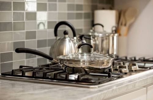 The upgraded kitchen is fully equipped with stainless steel appliances, a massive kitchen island and thoughtful extras like a spice rack and coffee bar, it's sure to serve as inspiration for many delicious meals.